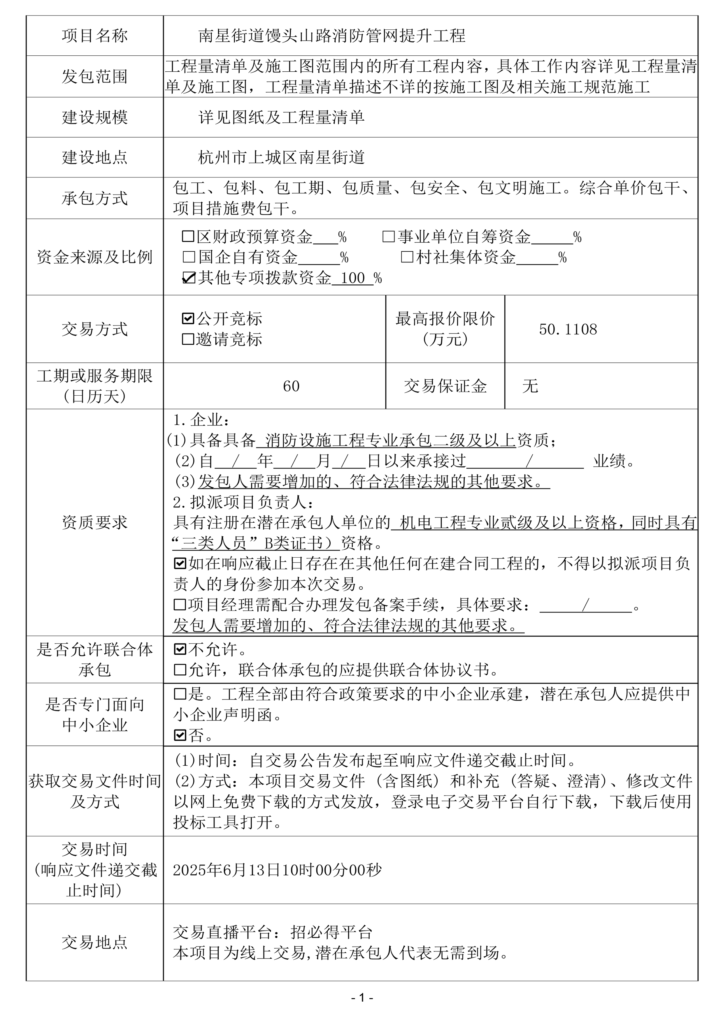 南星街道馒头山路消防管网提升工程交易公告